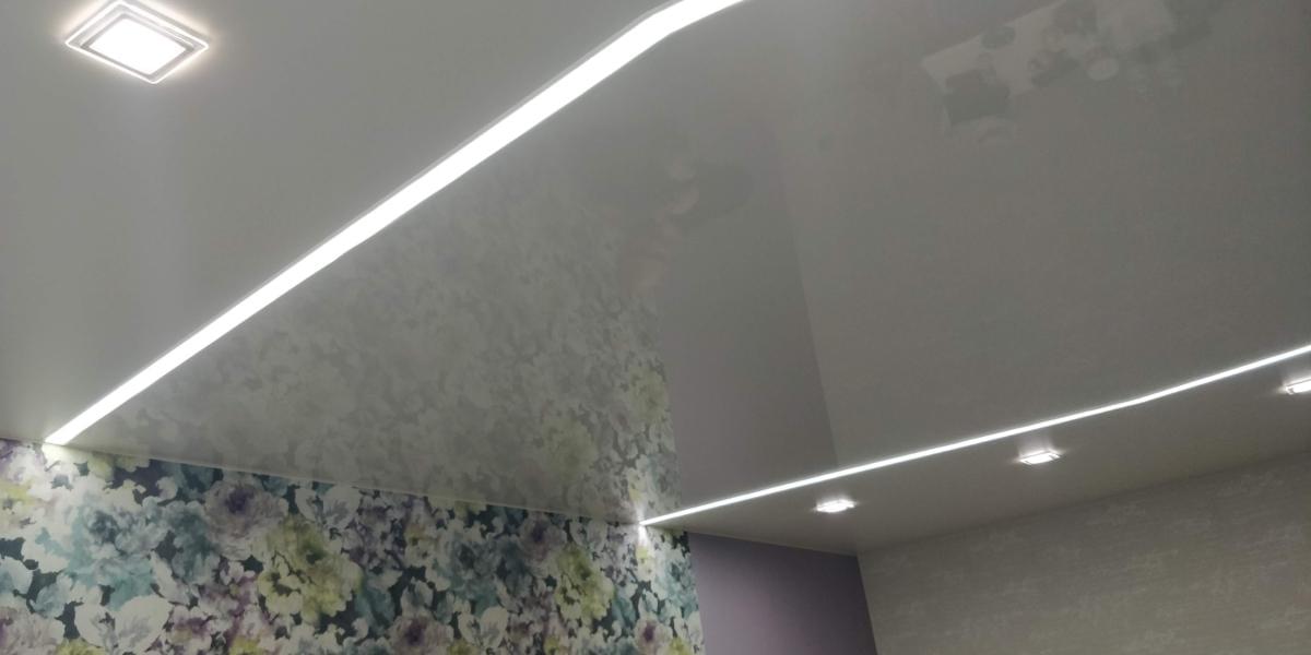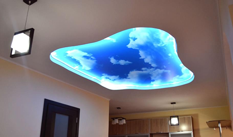Натяжна стеля в Ужгороді і в Закарпатті з ширяючою лінією чудово виглядає, може здійснювати функції як основного освітлення, так і декоративного підсвічування і легко замінює складні у виготовленні і установці, дорогі світлові карнизи. Ширяюча натяжна стеля може використовуватися як елемент дизайну і освітлення, так в комбінації з багаторівневими конструкціями або натяжною стелею з фотодруком, або іншими складними натяжними стелями.