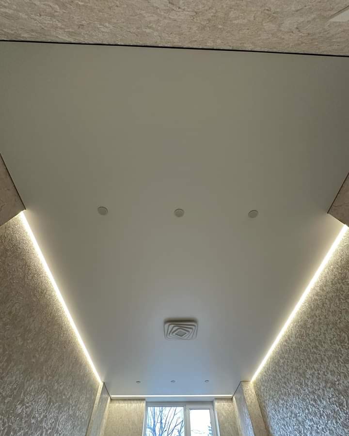 Ширяюча (паряща) натяжна стеля – це інновація в дизайні. Назва ширяюча натяжна стеля в Ужгороді і Закарпатті походить від зовнішнього вигляду даної технології – натяжна стеля якби не торкається стін, і здається, що вона парує в повітрі. Використовувати цей профіль в якому LED освітлення можливо, як і по всьому периметру, так і з однієї сторони, двох.